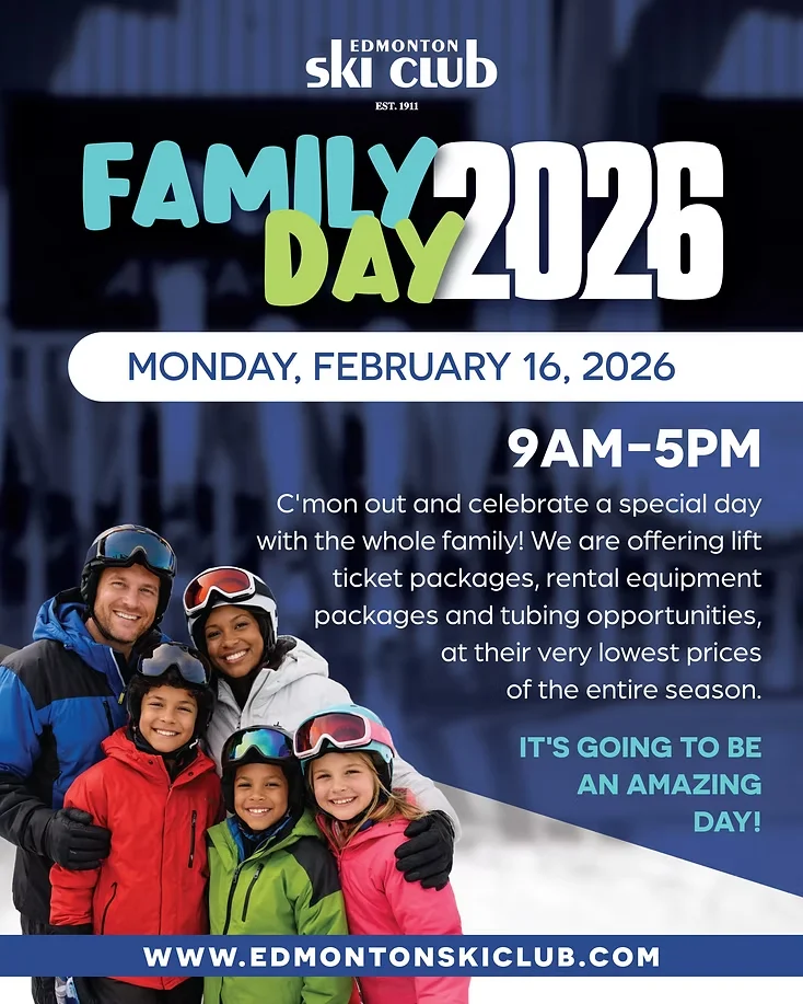 Celebrate Family Day at Edmonton Ski Club. Special ticket and rental packages.